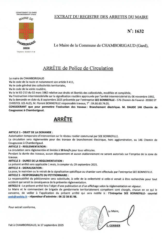 / Arrêté de police de circulation - chemin de Cougoussac