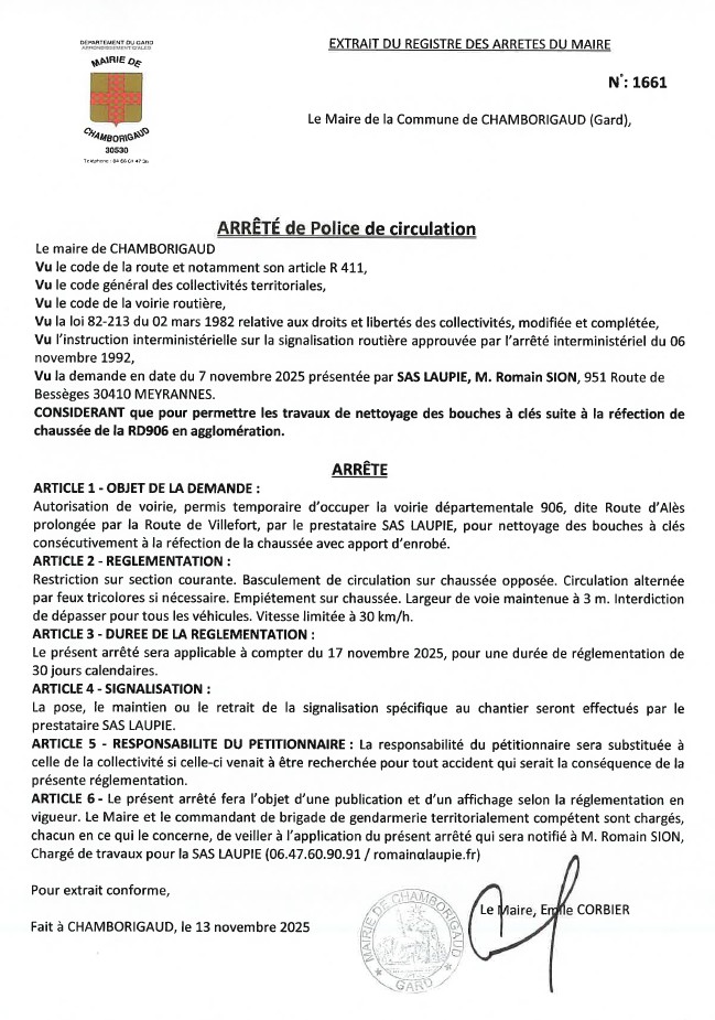 Arrêté de police de circulation : route de Bessèges