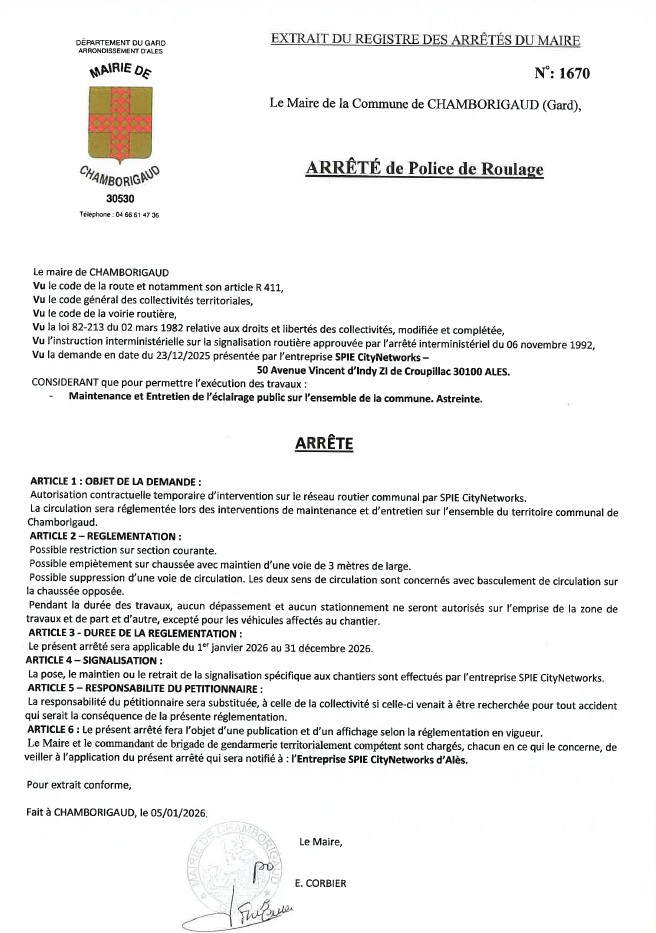 / Arrêté de police : Entretien éclairage public