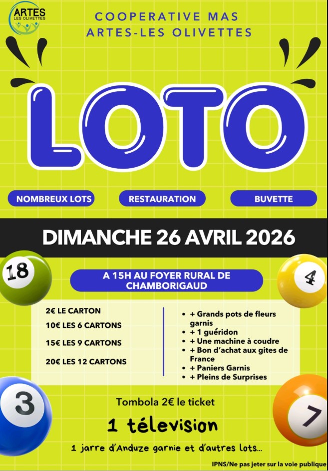 Loto ARTES Les Olivettes le 26/04/2026